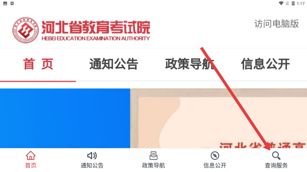1、在掌上考試院首頁中,點擊右下角的查詢服務按鈕,進入查詢服務頁面。