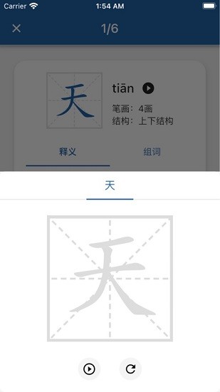 學(xué)寫字:查看正確的漢字書寫動畫,并進行手寫練習(xí)