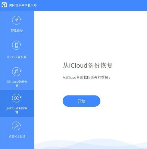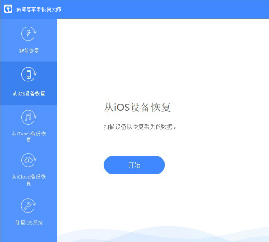 軟件有四種恢復(fù)模式:從蘋果設(shè)備恢復(fù)、從iTunes備份恢復(fù)、 從iCloud備份恢復(fù)、智能模式恢復(fù)。