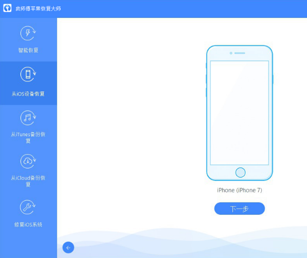 把您的蘋果設(shè)備和電腦連接, 當(dāng)軟件成功檢測到您的蘋果設(shè)備后,點(diǎn)擊“下一步”按鈕。