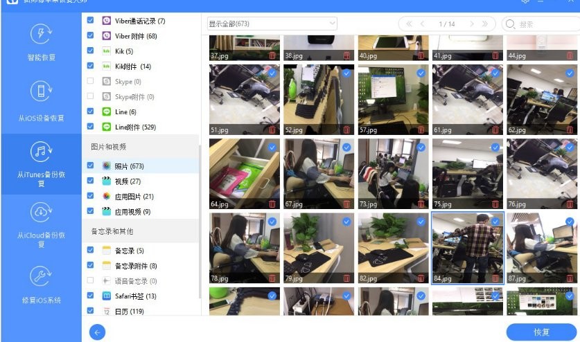 可逐一點(diǎn)擊左側(cè)邊欄(向左箭頭)查看所有文件類別,亦可點(diǎn)擊界面頂部的“顯示全部(673)”右邊向下箭頭點(diǎn)擊選擇“僅顯示已刪除的文件”查看已刪除的文件。