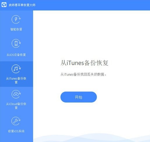 在左側(cè)邊欄,選擇“從iTunes備份恢復(fù)”, 點(diǎn)擊“開始”按鈕。