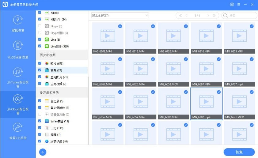 勾選需恢復(fù)的數(shù)據(jù),并點(diǎn)擊右下角的“恢復(fù)”按鈕。