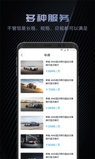 跑車租車官方版提供了多種跑車來打造的一個租車平臺,在軟件中對每款車型都進行了詳細的介紹,以及給出的相關(guān)的租賃價格,用戶可根據(jù)租車需求來進行選擇,租賃周期以及付款方式多樣,讓你需要跑車時,不妨來這里看看吧!
