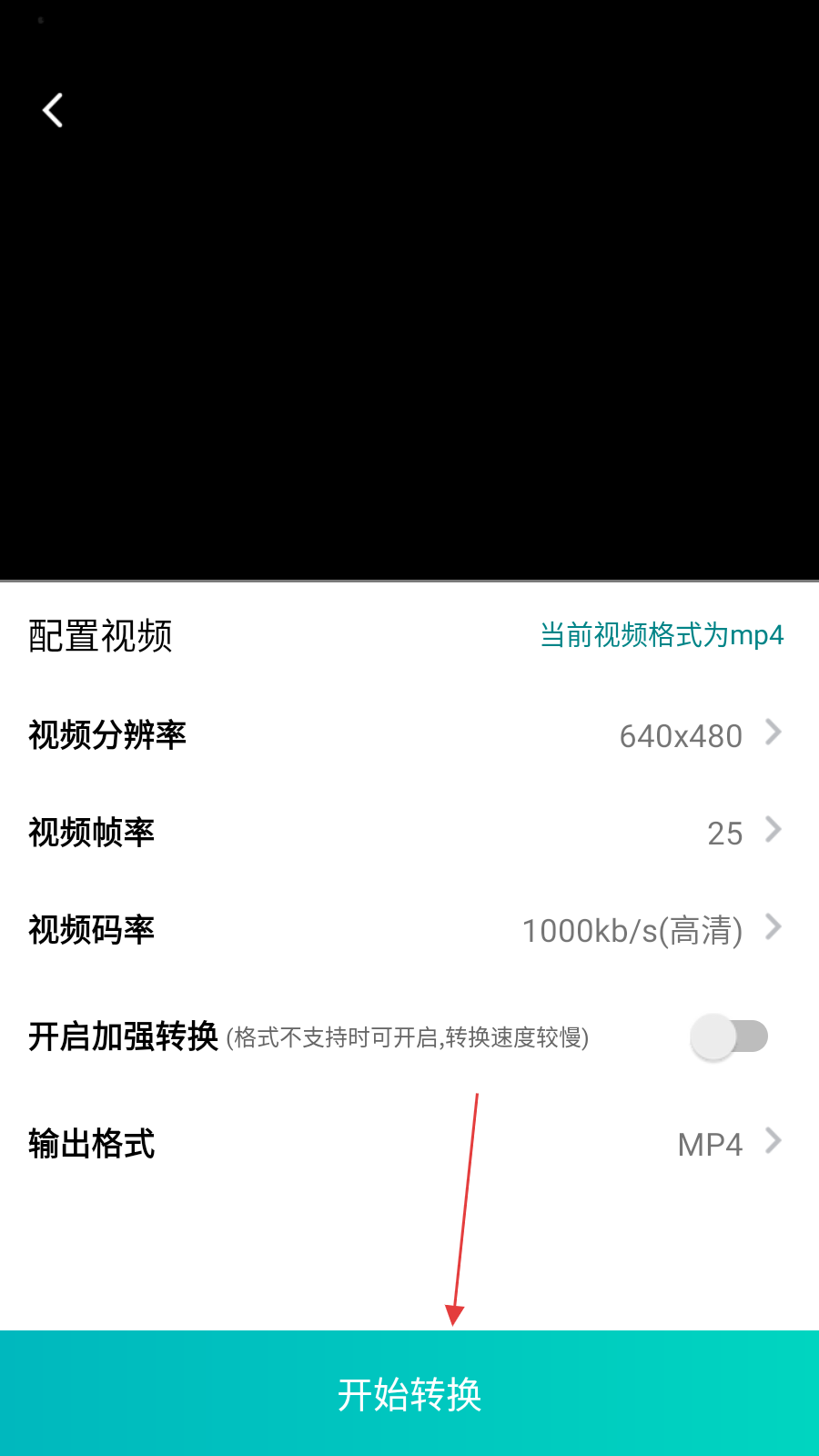 3、在視頻配置頁面,可根據(jù)需求設置視頻參數(shù),點擊頁面底部的開始轉換按鈕。
