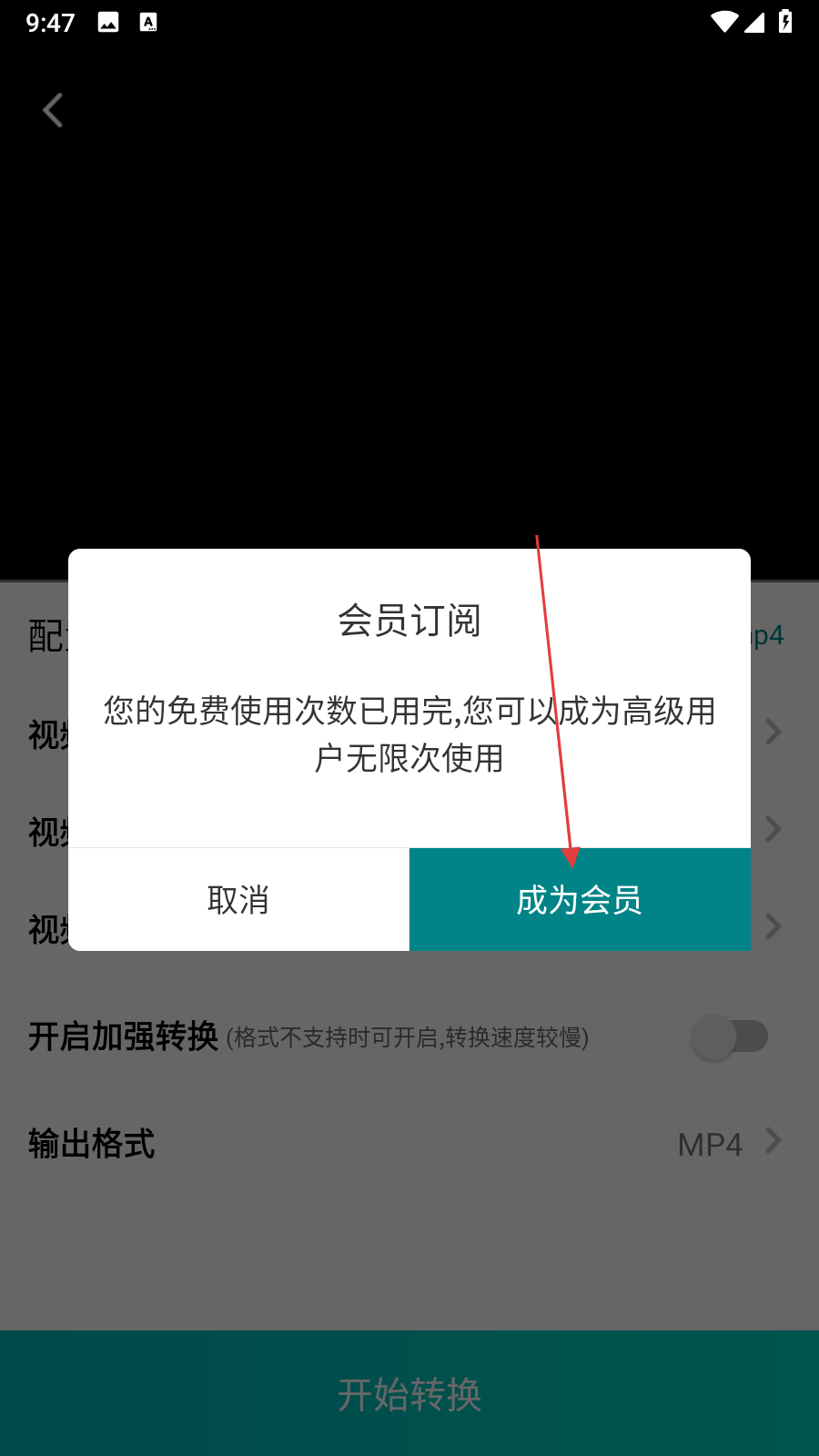 4、若免費使用次數(shù)已用完,會彈出會員訂閱提示框,此時可根據(jù)需求點擊成為會員按鈕開通會員。
