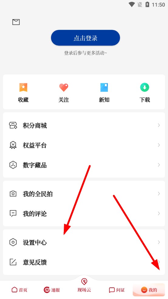 1、打開新華社APP,進(jìn)入我的個人頁面,找到并點(diǎn)擊設(shè)置中心選項,進(jìn)入設(shè)置界面。