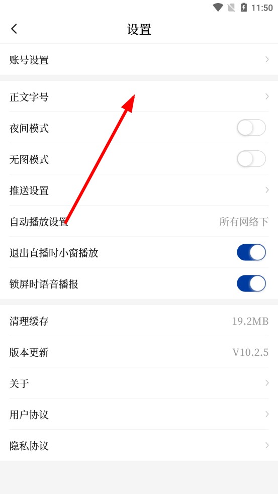 2、在設(shè)置頁面中,點(diǎn)擊正文字號選項。
