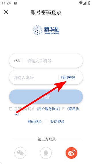 4、在賬號密碼登錄頁面,點(diǎn)擊找回密碼,按照提示完成密碼找回操作。