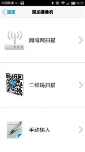 (1)點擊之后,出現(xiàn)如下設置界面,目前添加網(wǎng)絡攝像機的方式有掃描二維碼,局域網(wǎng)搜索和手動輸入三種方式。(攝像機要提前連接到局域網(wǎng))