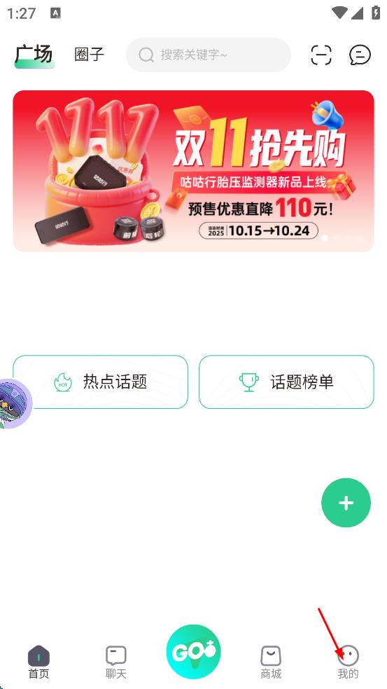 1、打開(kāi)咕咕行APP,進(jìn)入首頁(yè)后,點(diǎn)擊頁(yè)面右下角“我的”按鈕。