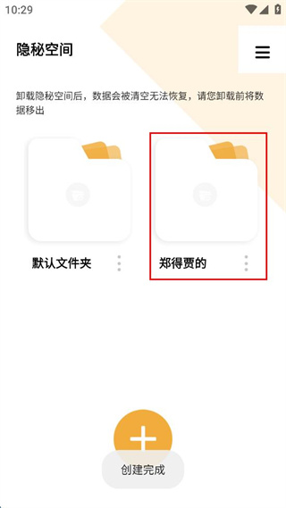 4、完成創(chuàng)建后,在隱秘空間主界面可查看新建的文件夾,后續(xù)可進(jìn)行文件管理操作。