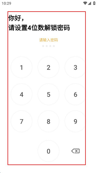 1、打開軟件,進(jìn)入設(shè)置4位數(shù)解鎖密碼界面,輸入4位數(shù)字密碼完成設(shè)置。