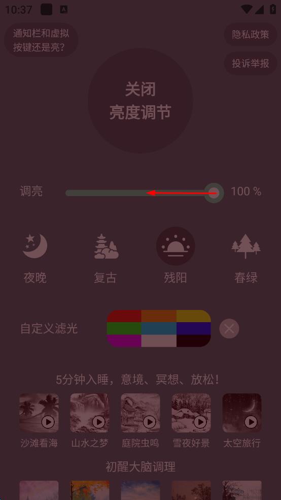 1.可以精準調節(jié)手機亮度的輕量級實用工具,針對不同的環(huán)境,設置不同的護眼模式,操作簡單,設置快捷,多種模式隨心選擇,同時還能自定義模式,個性化設置更加貼心。