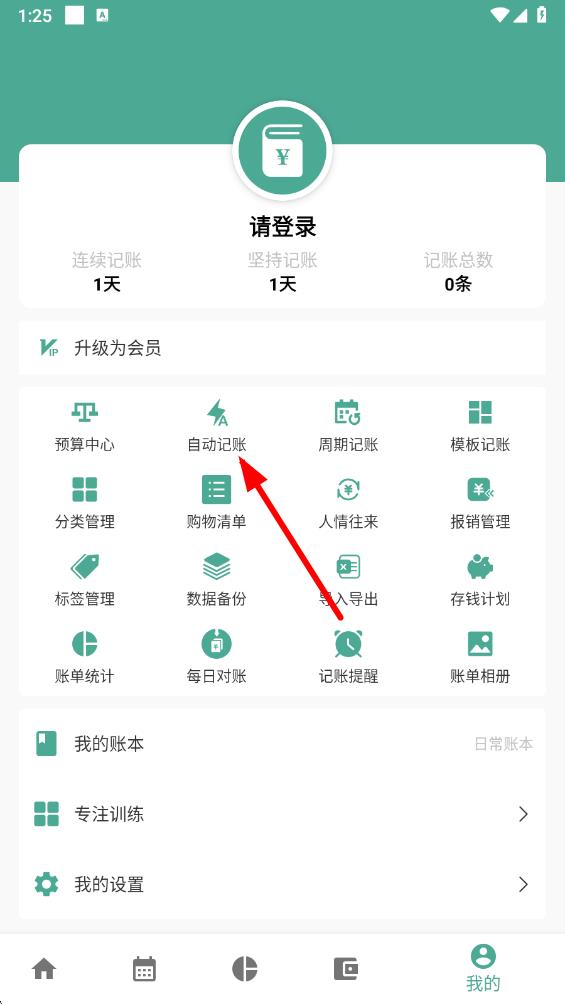 2、在個(gè)人界面中,找到并點(diǎn)擊自動(dòng)記賬選項(xiàng),進(jìn)入自動(dòng)記賬設(shè)置頁面。