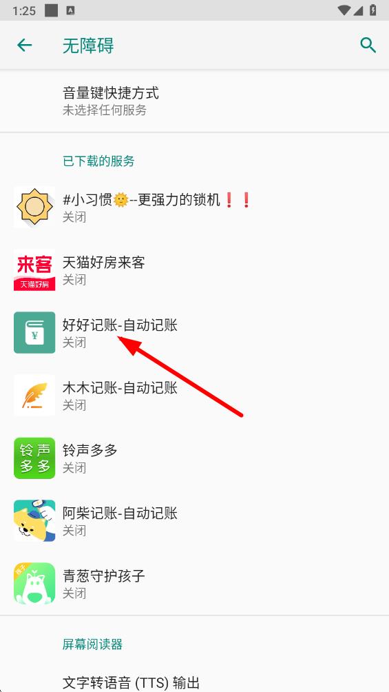 4、在無障礙設(shè)置界面,找到自動(dòng)記賬選項(xiàng)并點(diǎn)擊。