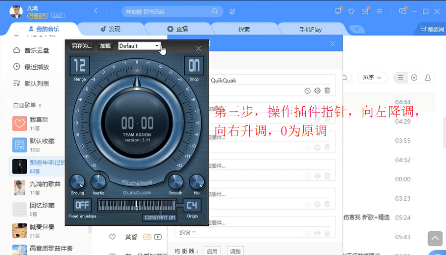 第三步,操作插件指針,向左降調(diào),向右升調(diào),0為原調(diào)