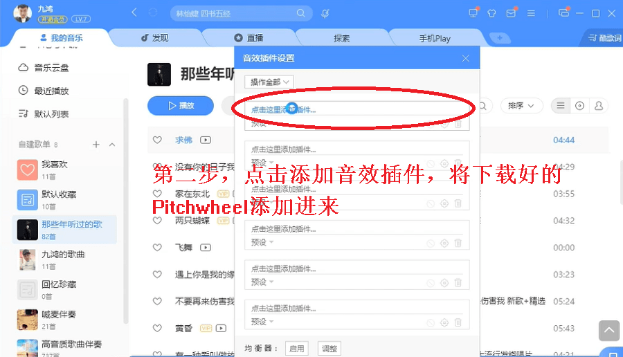 第二步,點擊添加音效插件,將下載好的Pitchwheel添加進來