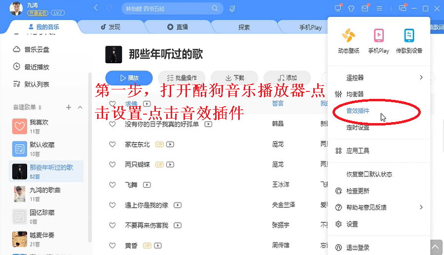 第一步,打開酷狗音樂播放器-點擊設置-點擊音效插件