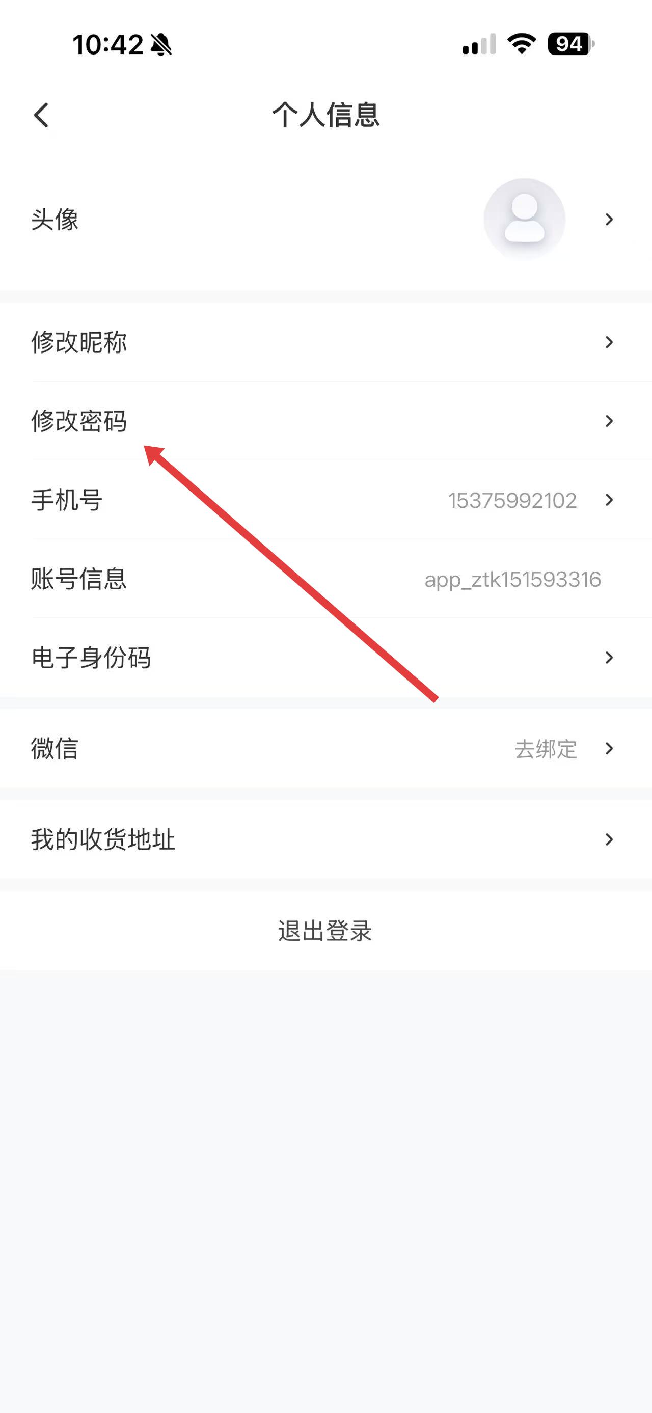 3、在個(gè)人信息頁(yè)面里,點(diǎn)擊修改密碼選項(xiàng)。