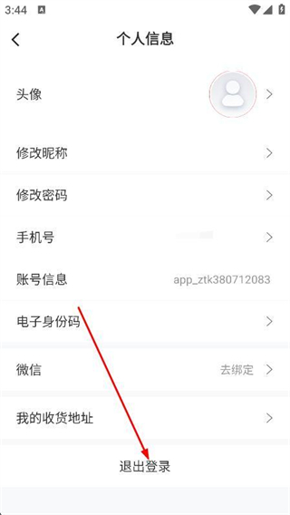 3、在個(gè)人信息頁(yè)面,找到并點(diǎn)擊退出登錄按鈕。