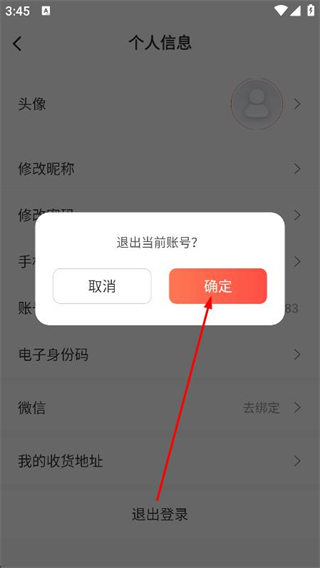 4、在彈出的彈窗中,點(diǎn)擊確定即可完成退出登錄。