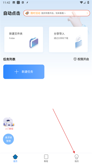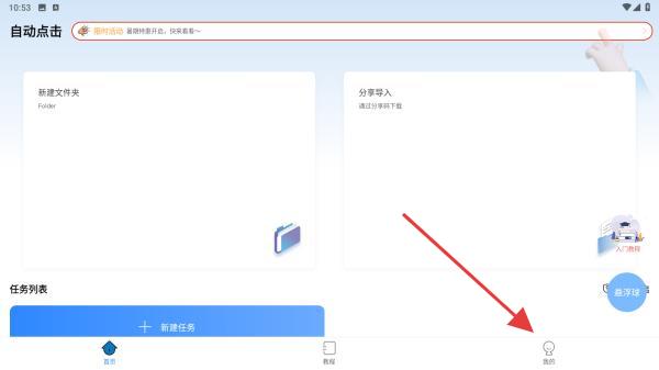 1、打開自動按鍵精靈APP,點擊右下角我的選項,進(jìn)入個人頁面。