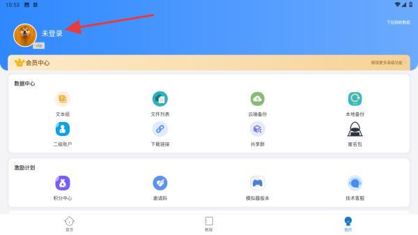 2、在我的頁面中,點擊左上角顯示未登錄的頭像區(qū)域,進(jìn)入登錄選擇頁面。
