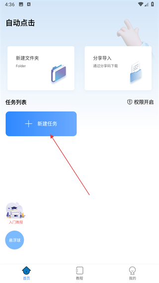 1、打開自動按鍵點擊應(yīng)用,點擊新建任務(wù)按鈕。