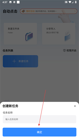 2、在創(chuàng)建新任務(wù)彈窗中,輸入任務(wù)名稱后點擊確定。