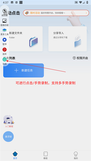 3、進(jìn)行點擊或手勢錄制,錄制完成后點擊完成。