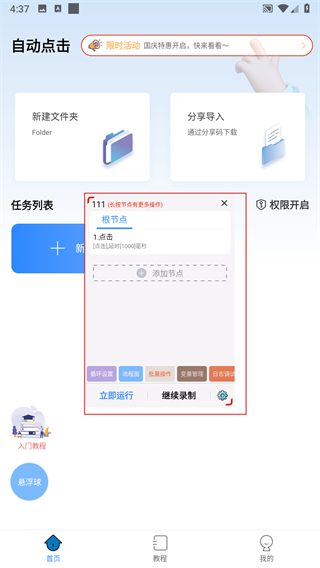 4、點擊立即運行即可啟動自動按鍵點擊任務(wù)。