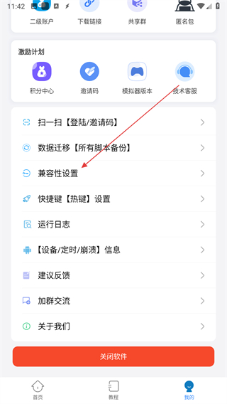 2、在個人頁面找到兼容性設(shè)置選項,點擊進(jìn)入兼容性設(shè)置頁面。