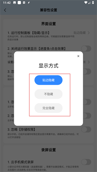 4、選擇貼邊隱藏、不隱藏、完全隱藏三種顯示方式,選擇后即可更改。