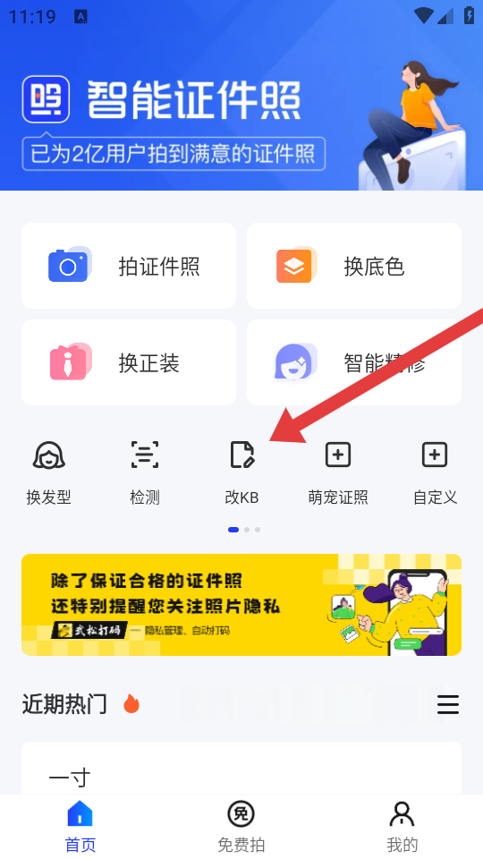 1、在智能證件照首頁,點擊功能欄中的改KB選項,進入圖片選擇界面。