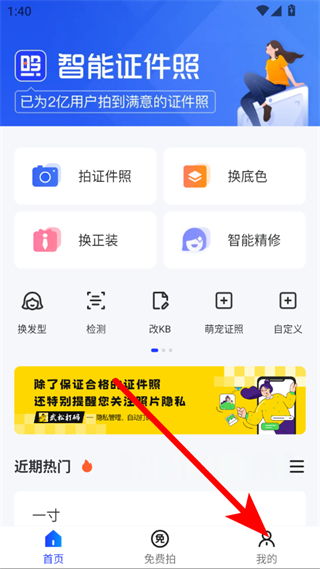 1、打開智能證件照APP,點擊右下角我的,進入個人頁面。