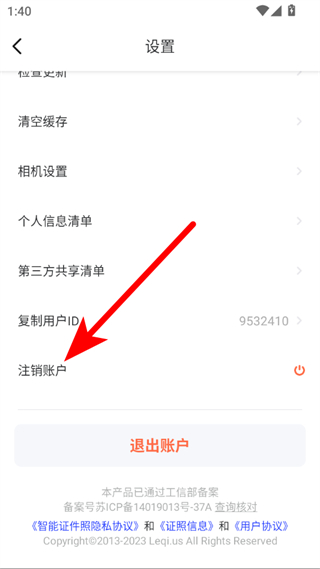 3、在設置頁面點擊注銷賬戶,彈出確認注銷賬號的提示框。