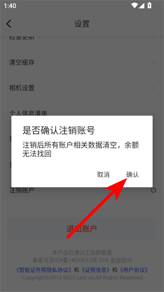 4、在提示框中點擊確認,即可完成智能證件照賬號的注銷操作。