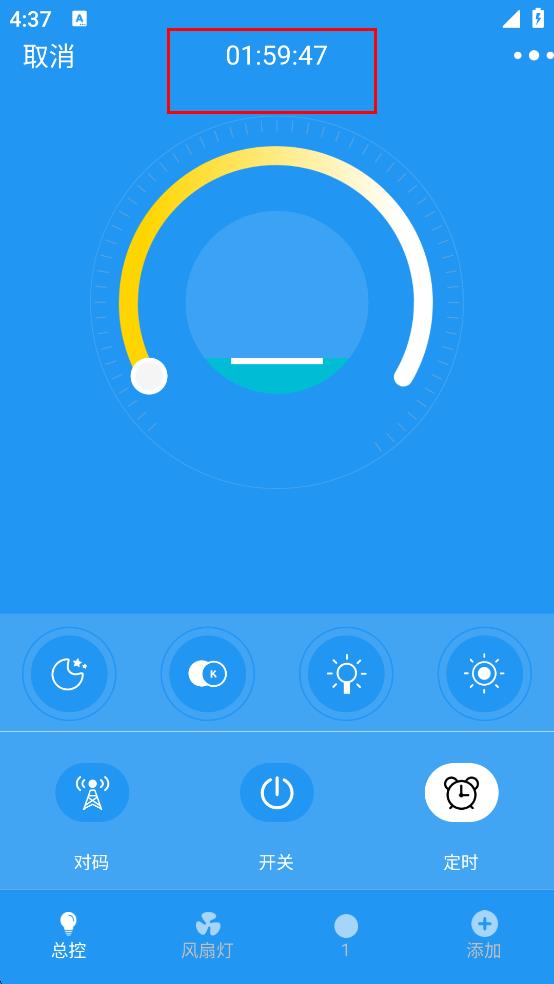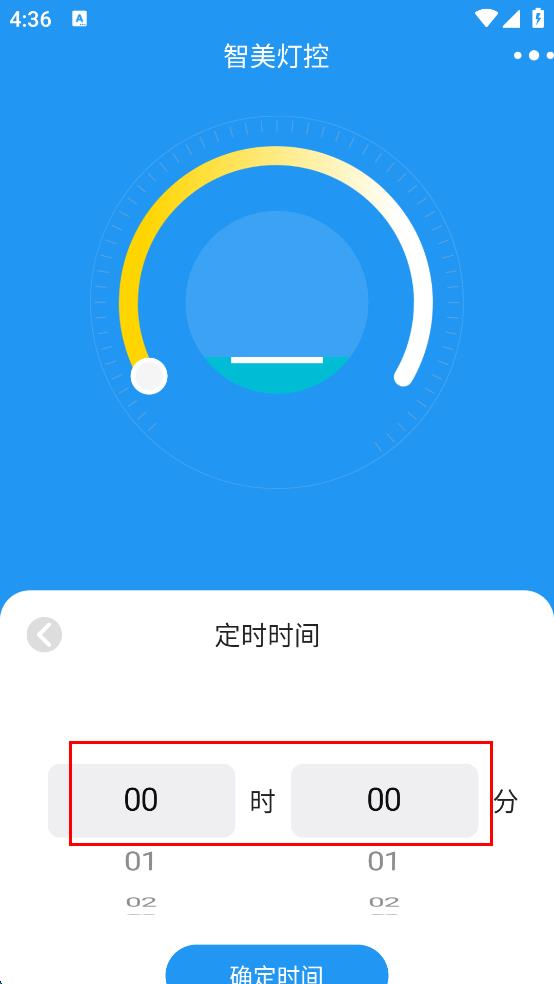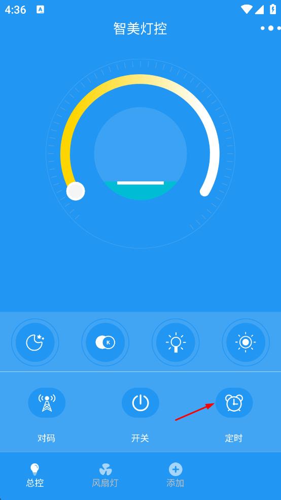 2、在智美燈控主界面,點擊“定時”按鈕,進入定時時間設置界面。