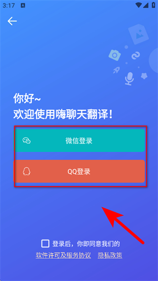3、進入登錄頁面后,選擇微信登錄或QQ登錄方式,完成賬號登錄。