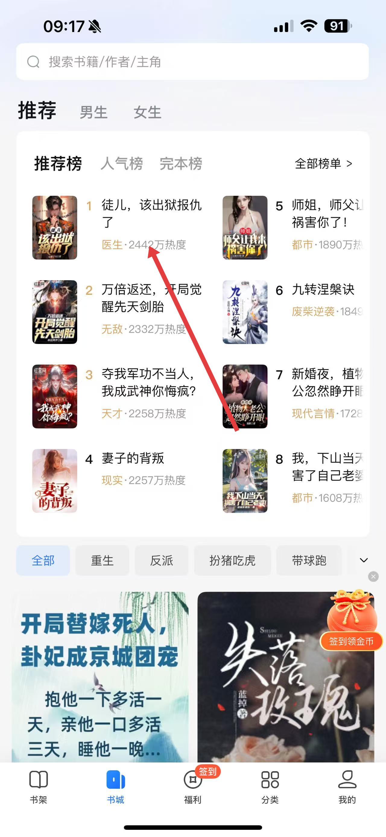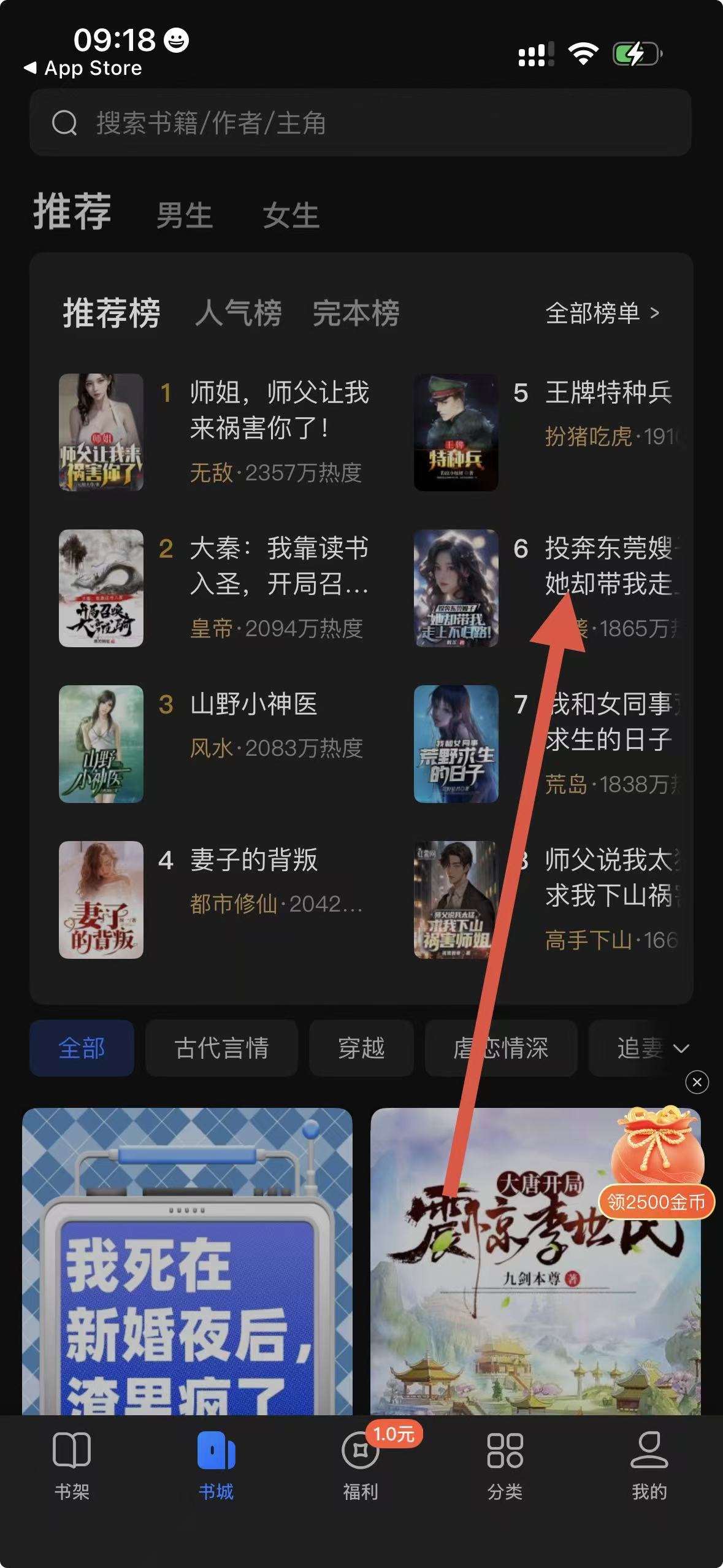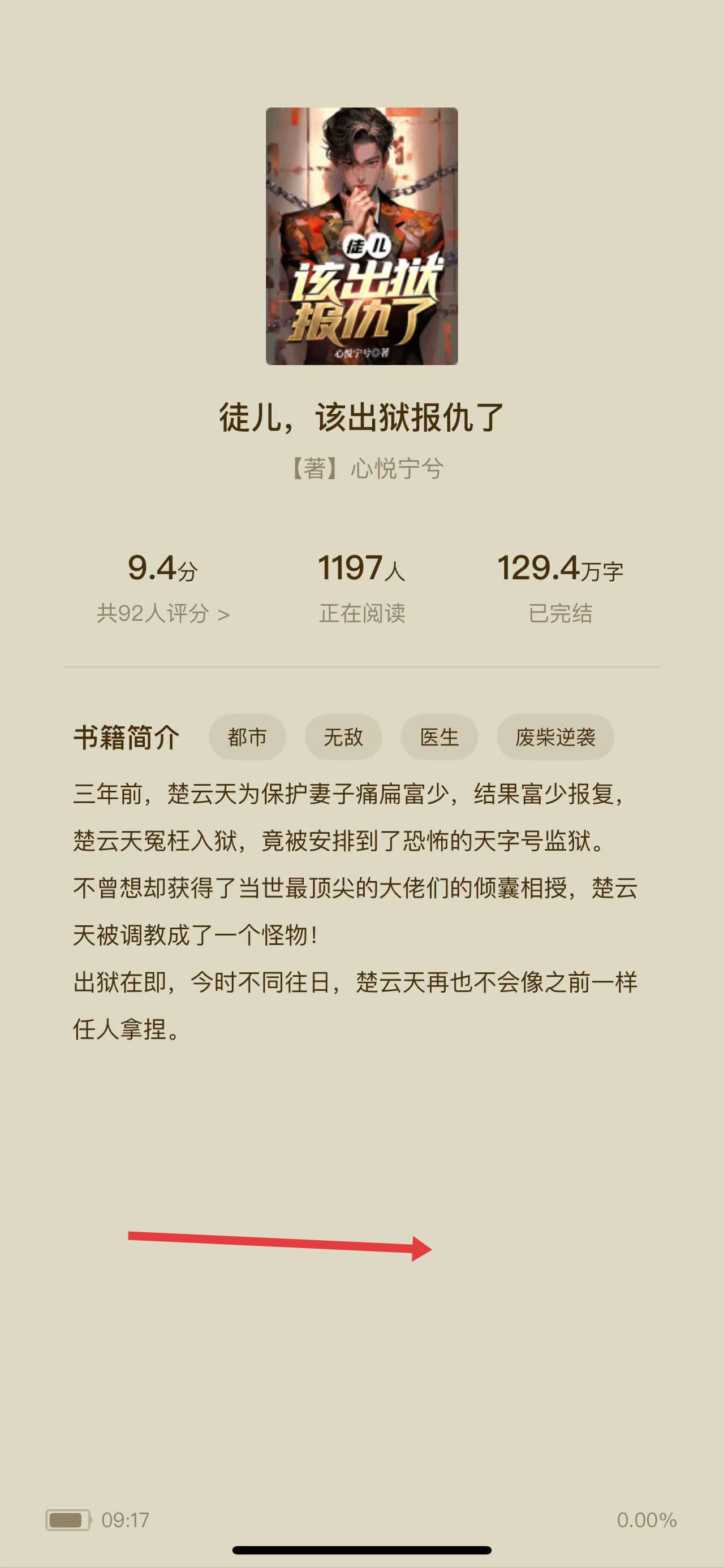 1、打開江湖小說免費閱讀app,在書城頁面的推薦榜里選擇一本小說,如徒兒,該出獄報仇了。