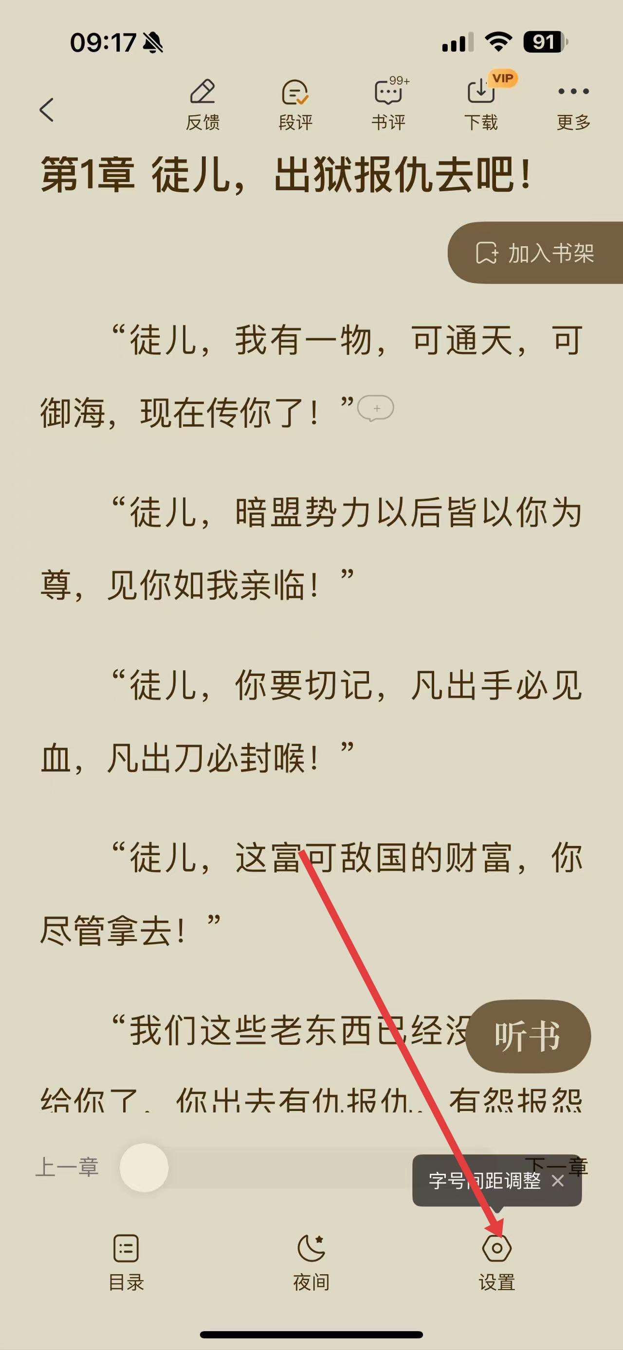 3、在小說閱讀界面中,點擊下方的設置按鈕。