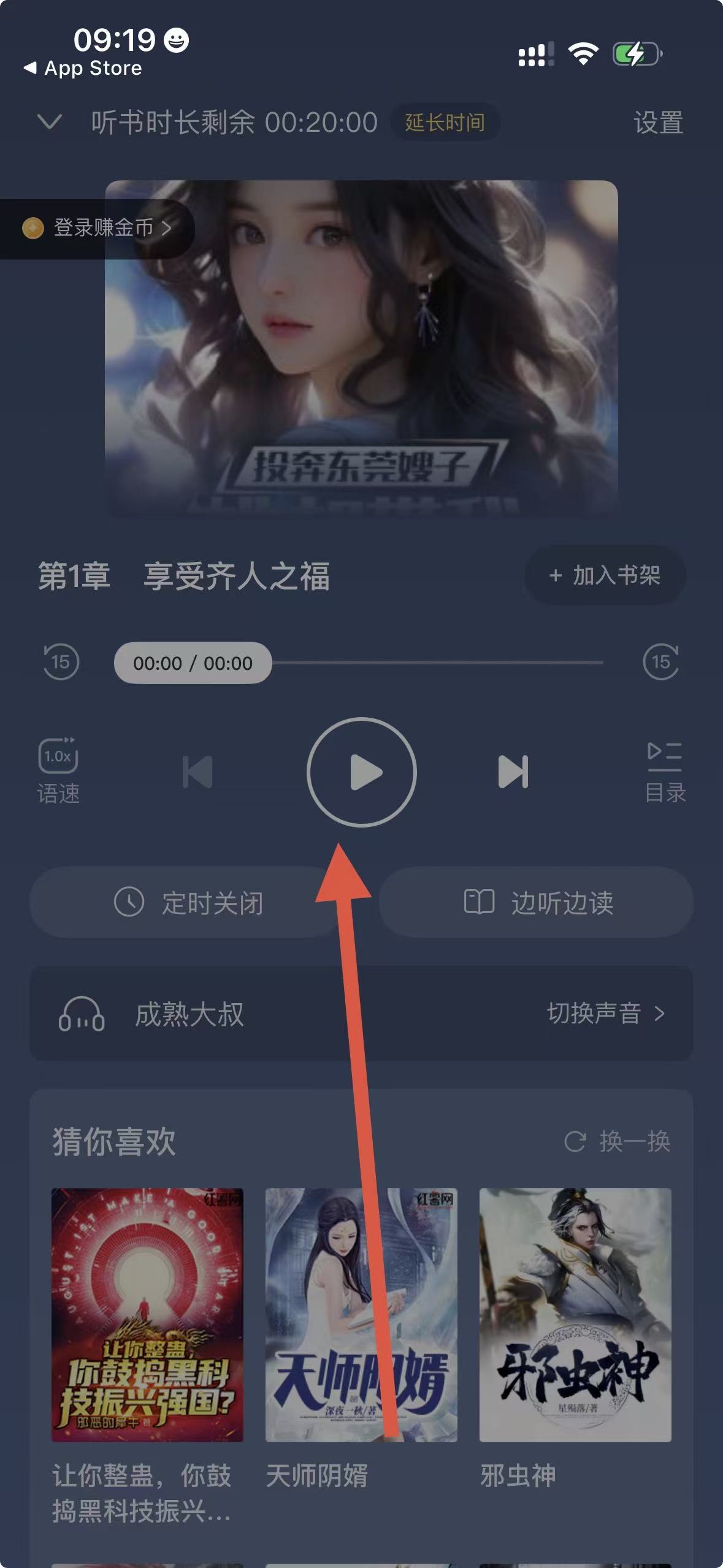 4、在聽書界面,點擊播放按鈕,即可開始聽書。