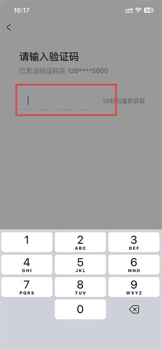 4、在驗證碼輸入頁面填寫收到的短信驗證碼,完成賬號登錄。