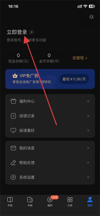 2、在個人中心頁面點擊上方立即登錄按鈕,進入登錄界面。