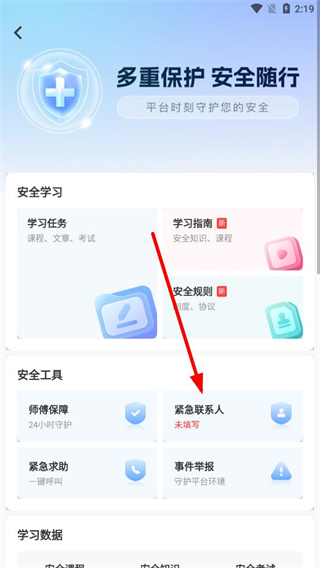3、進(jìn)入安全中心頁面后,點(diǎn)擊緊急聯(lián)系人選項(xiàng)。