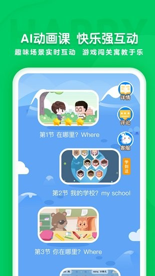 課本點讀+動畫課堂+口語闖關,300多本小學英語同步教材、純正發(fā)音,精選經典中英雙語繪本、孩子可以朗讀配音。