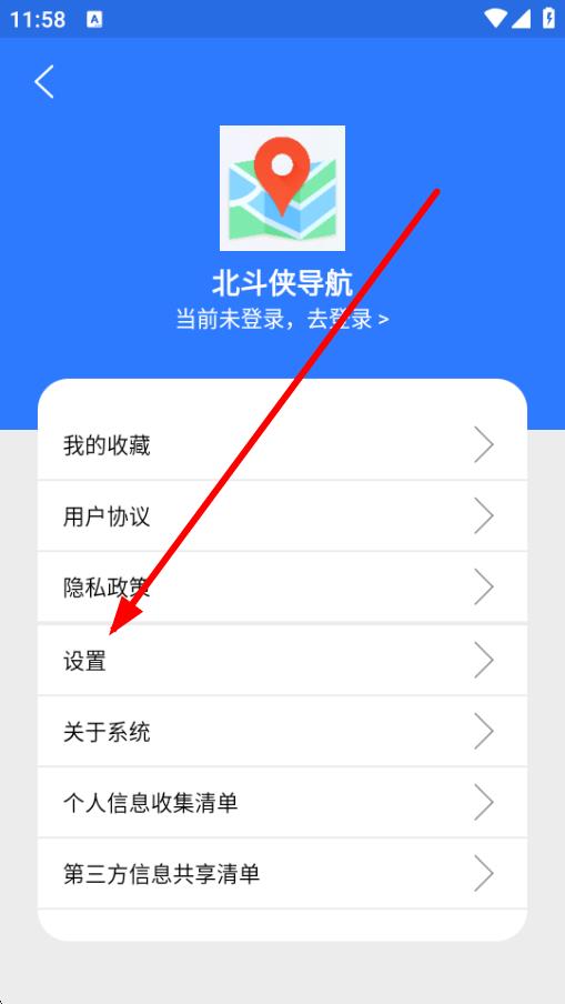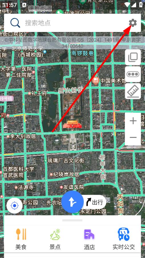 1、打開北斗俠導(dǎo)航應(yīng)用進(jìn)入主界面,點(diǎn)擊搜索欄右側(cè)的設(shè)置圖標(biāo)。