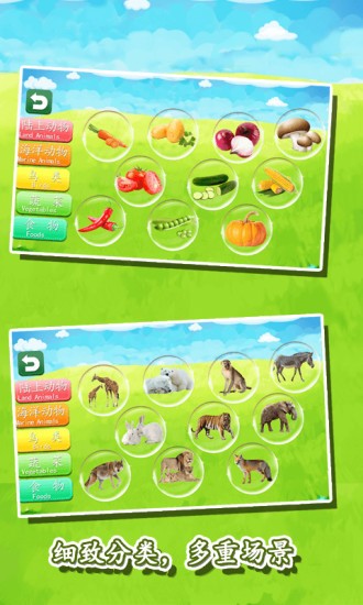 小朋友,日常生活中我們遇見(jiàn)的事物和食物你們都認(rèn)識(shí)么?蔬菜、水果、食物、鳥(niǎo)類、陸上動(dòng)物、海洋動(dòng)物它們的拼音是什么呢?公園、臥室、客廳這些場(chǎng)所里面都有什么呢?用漢字怎么說(shuō)?用英語(yǔ)怎么說(shuō)?一起來(lái)用小拼圖學(xué)習(xí)雙語(yǔ)語(yǔ)言,識(shí)字認(rèn)單詞,一起體驗(yàn)學(xué)英語(yǔ)的歡樂(lè)與樂(lè)趣吧!