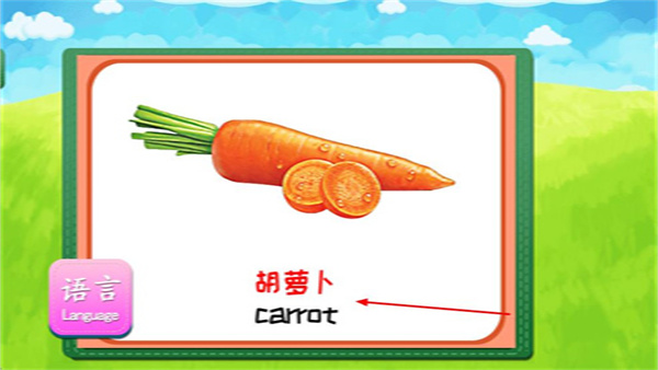 3、查看胡蘿卜的圖文信息,學(xué)習(xí)其名稱和英文表達(dá)。